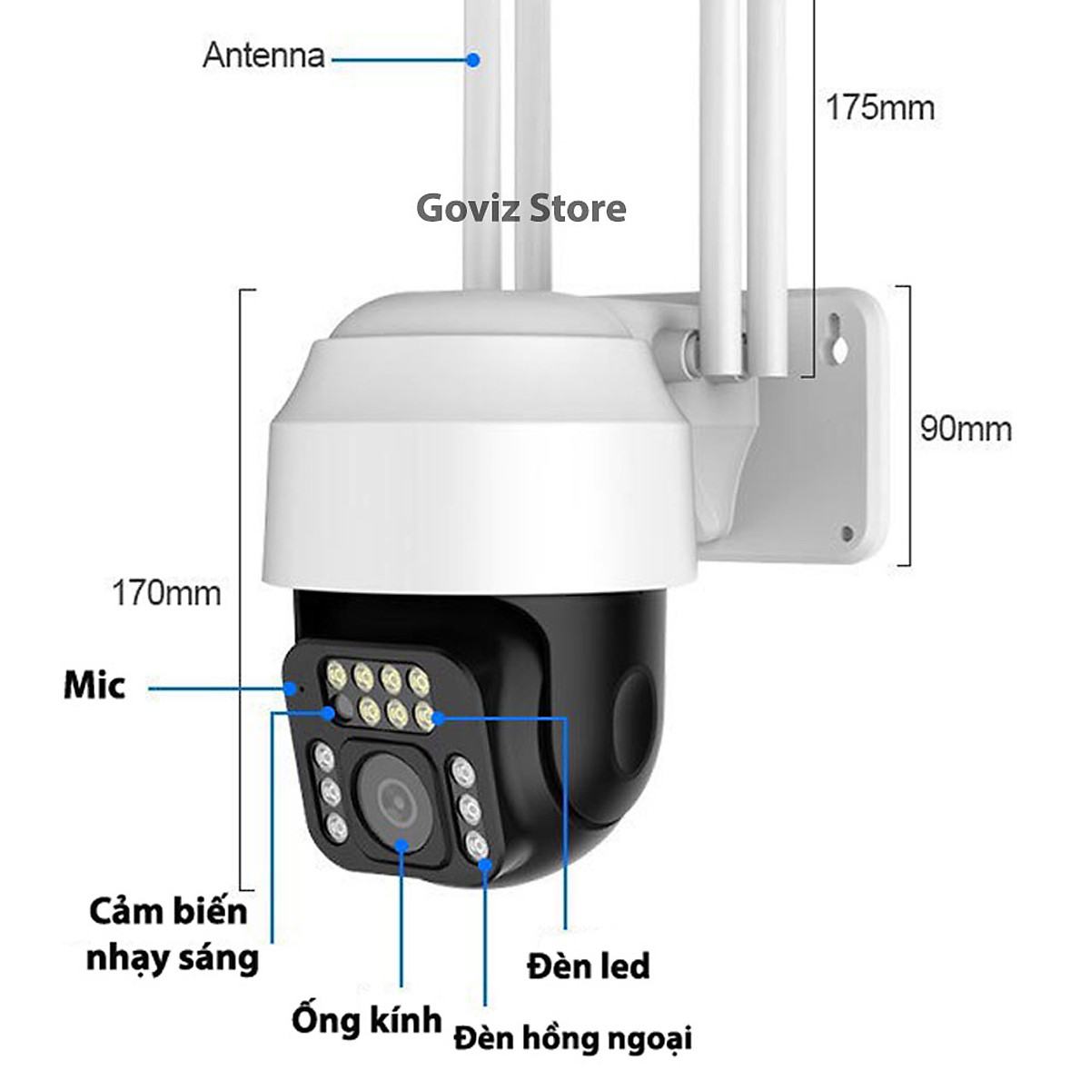 Camera Wifi Yoosee 4.0 Mpx Full HD, Dòng Ngoài Trời Xoay 360° C12 4 râu 14 LED