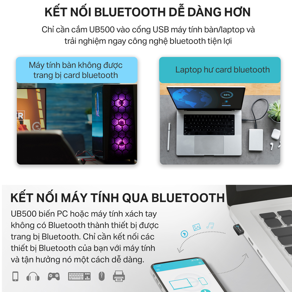Bộ Thu Phát Bluetooth TP-Link UB500 USB Nano Bluetooth 5.0 - Hàng Chính Hãng