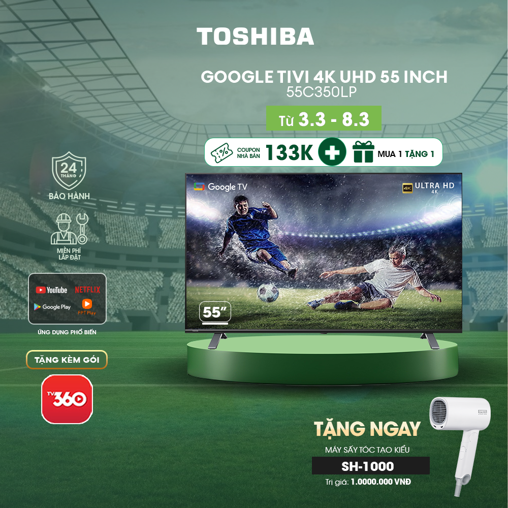 Google Tivi TOSHIBA 55 inch 55C350LP, Smart TV Màn Hình LED 4K UHD - Loa 24W - Hàng Chính Hãng